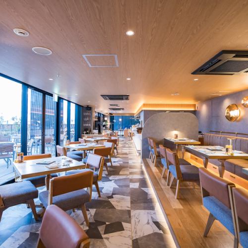 ジーライオンアリーナ神戸のアリーナ南側に面する、海やパークエリアを広く望むオーシャンビューレストランです!イベント前後の食事はもちろん、さまざまなシーンでお使いいただけます☆